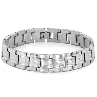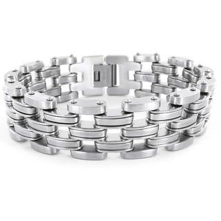 This bold link bracelet for men showcases screw details at the center of each larger link. Crafted of stainless steel with a sleek satin finish, this bracelet fastens with a fold-over jewelry clasp.| Caractéristiques | |