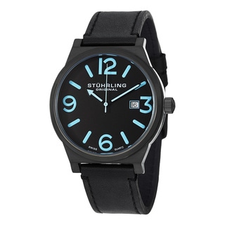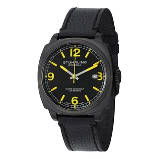 SaleStuhrling Original Men's Concorso Villa Black Leather Strap Watch