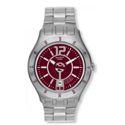 Practical, hardwearing and reliable, this watch by Swatch offers all you need in a timepiece. Its polished matte stainless steel case houses a deep blood-red dial with silvertoned hands and indicators, as well as a convenient date display.| Caractéristiques | |