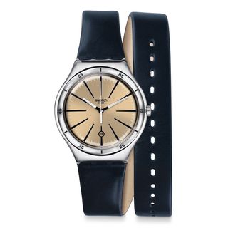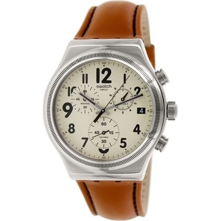Generally made of plastic, featuring bright colors, trendy designs, Swatch watch is the largest and most successful watch company in the world. This men's watch from the Irony collection features a brown leather strap and black dial.| Caractéristiques | |