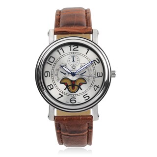 Timetech Men's Brown Leather Strap Silvertone Watch