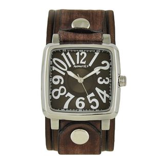 SaleNemesis Brown and White '3D Squared' Unisex Watch with Vintage Brown Embossed Stripes Leather Cuff Band
