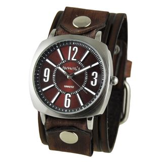SaleNemesis Burgundy 'Comely' Unisex Watch with Vintage Brown Embossed Stripes Leather Cuff Band