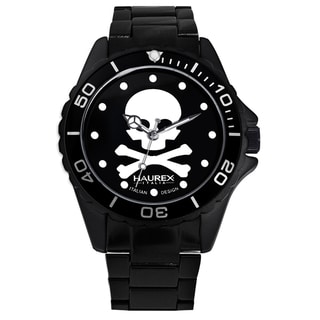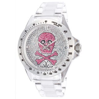 This Duel Men's White and black Stainless Steel and Polycarbonate and Rubber watch by ToyWatch has a reversible case and features a crystal set skull and crossbones. A 24 hour display, date function and dual time zone are set on the world map dial| Caractéristiques | |
