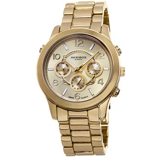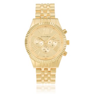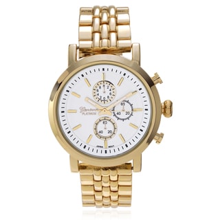 Sport an effortlessly sophisticated look with this goldtone stainless steel watch by Vernier. With a wide dial and easy-to-read markers, this watch is the perfect way to stay on time and in style.