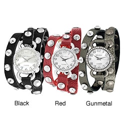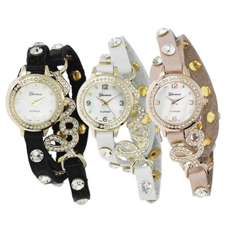 SaleGeneva Platinum Studded Faux Leather Wrap Watch