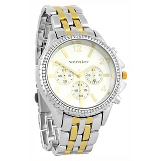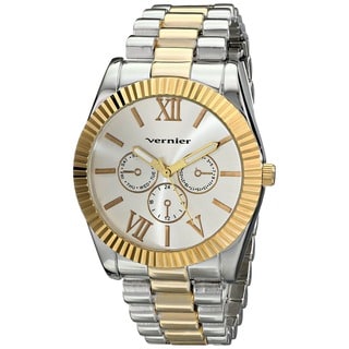 This Vernier timepiece features a beautiful geometrical pattern link bracelet in fashion forward silver-tone. The white enamel bezel compliments the white dial containing faux chrono subdials inside. It is the perfect accessory for every occasion, whether it is every day, or evening fun. The Vernier watch arrives in a complementary gift box with a 5 year limited manufacturer warranty.| Caractéristiques | |