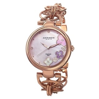SaleAkribos XXIV Women's Genuine Diamond Flower Dial Twist Chain Bracelet Watch