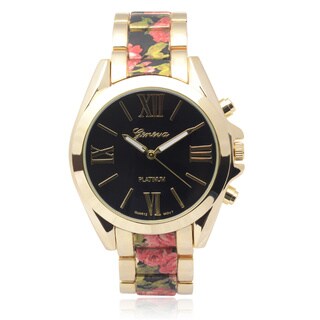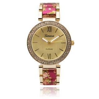 SaleGeneva Platinum Women's SW-2394 Rhinestone Accent Round Dial Quartz Link Floral Watch
