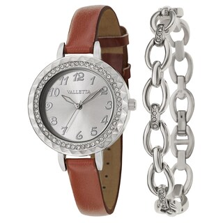 SaleValletta Women's 'Crystal' Stainless Steel Brown Synthetic Leather Strap Quartz Watch