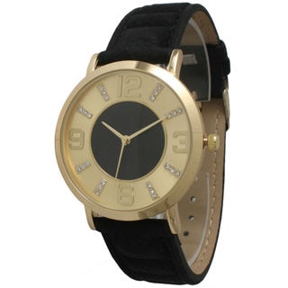 SaleOlivia Pratt Women's Rhinestone Marker and Goldtone Accent Leather Strap Watch