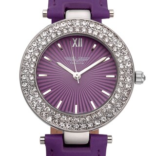 SaleDeporte Women's Valencia Crystal-studded Bezel Textured Dial Watch with Purple Leather Strap