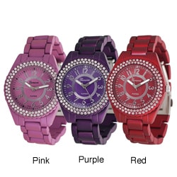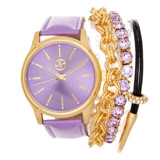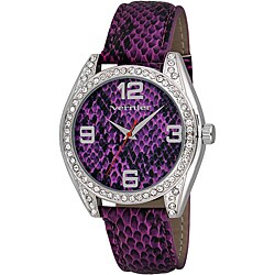 wearing this trendy purple snake skin timepiece. The crystal chips