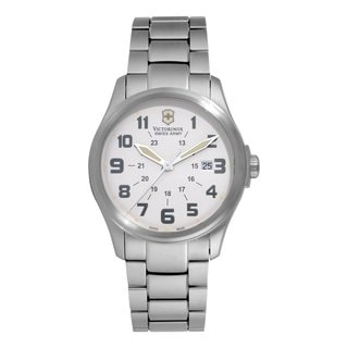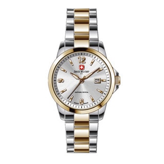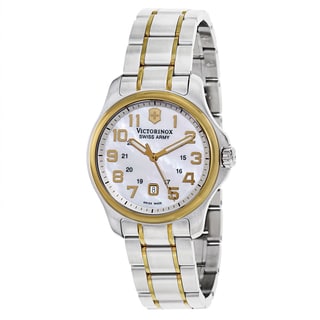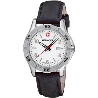 This Wenger Swiss quartz watch has a refined look with two-tone styling and a crisp white dial. Luminous hands, a date window and 24-hour military time markers make for excellent timekeeping.| Caractéristiques | |