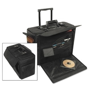 Carry your laptop and files between meetings with this rolling computer/catalog case. A folding fan file provides three compartments for easy organization, and the removable padded computer pocket holds laptops up to 16 inches. Store pens and small supplies in the zip-front organizer. Inside the case, a removable hanging file frame keeps your valuable documents safe.With its telescoping handle and built-in wheels, this sturdy case rolls easily through an airport or an office. A top handle allows one-handed carrying for shorter distances. The case features a sleek black exterior for a professional, pulled-together look.
