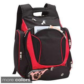 The CalPak Pinnacle backpack comes in a variety of colors and features self-repairing zippers. The trendy polyester backpack has zippered side pockets for accessories and an MP3 earphone port.