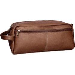 This large shave kit will handle all your toiletries, cosmetics or accessories. It has zippered pockets on front and back as well as a roomy main compartment. A loop handle on one end makes it easy to tote. Our soft, rich vacquetta leather displays all the character provided by nature, making each piece unique. Our tanning process locks in natural oils, producing a soft, durable hand that won't crack or become brittle with normal use. Occasional maintenance with a high-quality conditioner is recommended for lasting performance.