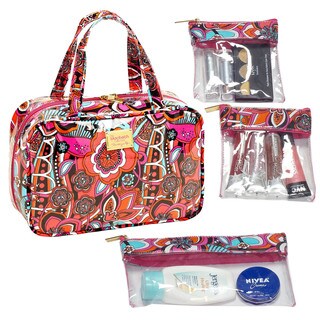 Organize your essential with ease with this organizer. Made of 600D polyester. Two zip mesh pockets on one side with attached mirror.. Four clear pockets and two mesh pockets. An elastic strap to organize smaller accessories. All pictures iteams are not included with bag.| Caractéristiques | |