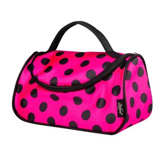 SaleZodaca Women Satin Polka Dots Zipped Travel Hanging Organizer Cosmetic Bag Makeup Case with Mirror