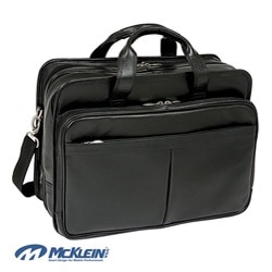 Protect your most valued media devices on the go with this Walton leather double compartment 17-inch laptop briefcase from McKlein USA. Full-grain, oil-tanned leather is not only appealing but also durable. The comfort flex shoulder strap is designed to stretch for your carrying comfort and prevent strain. A spacious front compartment extends two inches to better accommodate your needs while a foam-padded back compartment provides extra protection for your device. Multiple pockets are incorporated to carry everything from your cell phone to your keys. A smart zipper makes it simple to attach this luxurious computer case to your luggage handle.
