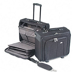 This durable rolling carry-on suitcase will get you around town in style. Whether you're making the daily commute or heading out of town, this rolling tote bag has a locking handle and rolling wheels for easy maneuverability through any airport or train station. The large main compartment offers storage for your laptop as well as files, documents, or personal items and has an interior zippered pocket to keep your small items in place.| Caractéristiques | |