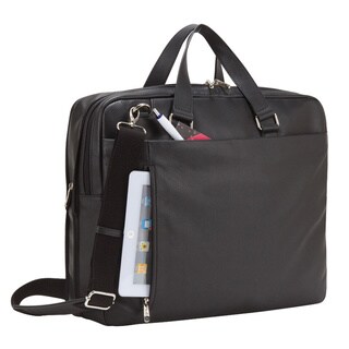 This Zip-Around Slim Laptop Briefcase offers the user a comfortable, easy to carry and hassle free bag to carry their essentials wherever they go. The soft, flexible vaquetta leather make this a lightweight bag, while still remaining sturdy and durable throughout with impeccable stitching and lining finish. The interior is well organized with pockets for your electronics devices and accessories, plus room for paper and files. Lightweight all leather briefcase is simple yet elegant, very slim and not the least bit bulky. Neatly holds 17 inch laptop inside main zippered compartment. Has one interior zippered pocket that is quite large. Front of case unzips to feature numerous pockets/compartments for Blackberry/iPhone, pens and many other essentials. Also features a large separate zippered pocket within the front pocket. At the top (front) velcro unsnaps revealing a large hidden pocket. Comfortable carry handles. Rear of the case features a zippered pocket that zips at top and bottom to easily slide onto rolling luggage. Bag features a light-weight leather and nylon strap for easy carry.| Caractéristiques | |