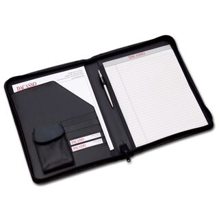 Beautiful workmanship with great attention to detail. This Luxurious Bonded Leather Pad holder in genuine leather features turned-edge leather folder features a soft Luxury Suede lining, large slotted pocket and a convenient business card pocket and includes a 8.5 x 14 legal pad. (Pen not included) Available in a stylish black color, this piece is sure to complement your professional or personal life.| Caractéristiques | |