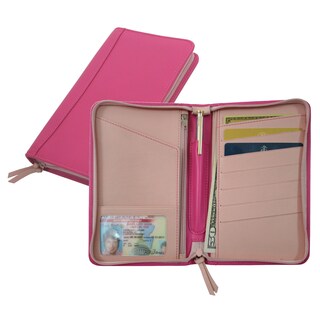 RFID (Radio Frequency Identification) tags are now being placed in US Passports, credit cards and other forms of identification. Protect your information from hackers by using a Royce RFID Blocking Wallet. This Saffiano Leather Fan Wallet features a built in shield that blocks radio frequencies embedded in your Credit Cards and IDs. A multiple-pocket interior opens just like a fan and it has 2 currency pockets on each side along with 12 credit card pockets. A zippered pocket in the middle holds your change. 3 additional compartments can be used to carry your keys, lipstick, or checkbook. This Wallet in Leather has a zippered closure and an extra exterior pocket.- Materials: Saffiano Genuine Leather