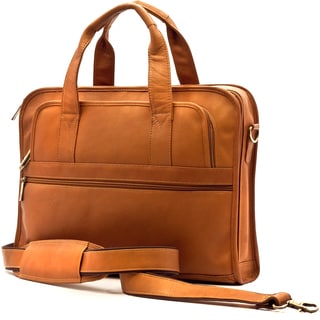 Made with our full grain buffalo hide leather. This large capacity, three compartment briefcase features numerous interior pockets, a padded laptop computer sleeve, 90 degree zip-open front organizer for pens, cellphones, etc., and a leather strap on the back to fit over wheeled luggage handles.| Caractéristiques | |