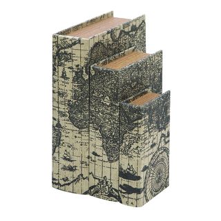 SaleAntiqued Book Wood and Leather Storage Boxes (3-piece Set)