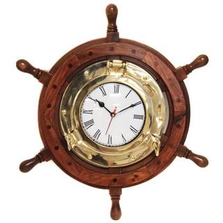 SaleNautical Ship Wheel Brass Porthole Wall Clock