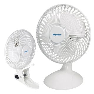 Discover the convenience of personal temperature control with this personal fan. Including a clip-on feature, this fan will mount wherever you need it to. Rubber grips allow this fan to hold tight while preventing scratches. Equipped with two-speed operation and an adjustable tilt mechanism, this fan is sure to fulfill your temperature needs.Combine convenience with durability, and try out the multiple uses of this handy personal fan by clipping it to a tabletop, window sill or door frame. Featuring a five-foot electrical cord and weighing just over two pounds, this versatile gray fan provides cool air wherever you need it in a compact size.