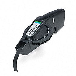 Put extra style into your labeling! This customizable model offers three changeable faceplates to help personalize your labeler. Plus, the Deco Mode feature lets you add up to eight stylish patterns to labels you design. Create labels using one or two lines of text, nine type styles and 173 symbols. Offers seven framing options, vertical and repeat (up to nine copies) printing. 12 character LCD display and QWERTY-style keyboard. Uses 4 AAA batteries (sold separately). Includes one black-on-white 1/2 inch M starter tape. Tape measurements are approximate. Machine Width: 6 1/10 inches; Machine Depth: 4 1/10 inches; Machine Height: 2 1/5 inches; Power Source(s): 4 AAA Batteries (Sold Separately).| Caractéristiques | |