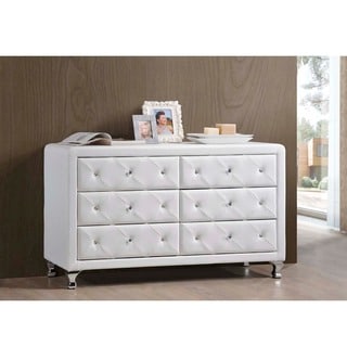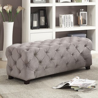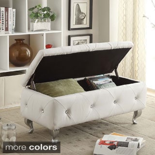 This tufted bench features faux crystal button tufting and chrome-plated legs that combine to create an elegant look. Available with white or black upholstery, this faux leather bench is easy to coordinate with your existing decor. Made with durable rubberwood, this bench has foam cushioning for your comfort and is easy to keep clean.This tufted bench is an attractive piece in a classic style that's sure to attract attention. The solid rubberwood frame is covered in easy-care white faux leather and tufted with crystal-clear buttons that give the bench extra sparkle and depth. The metal legs are covered in brilliant chrome plate, completing this dazzling addition to your home.