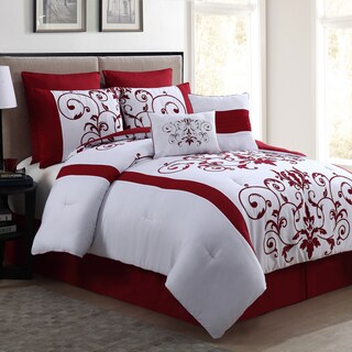 SaleCassandra Queen Geometric Floral 8-piece Red Comforter Set (As Is Item)