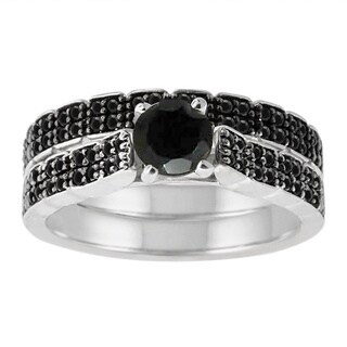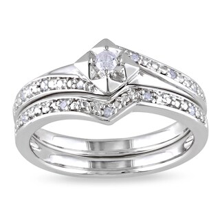 SaleMiadora Sterling Silver 1/10ct TDW Diamond Bridal Set (H-I, I2-I3) Size 4 (As Is Item)