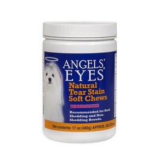 Angels' Eyes-Plus Antibiotic Free Supplement For Dogs. Extremely flavorful. Only Angels' Eyes helps give your pets tear stain free eyes and a bright coat. May help keep tear stains away by reducing oxidation released through tear ducts and may reduce the reddish brown colors that are binding with the animals hair. New and improved with no antibiotics. Recommended for both shedding and non-shedding breeds. This package contains one 2.64oz bottle of eye supplement. Comes in a variety of flavors. Each sold separately. For dogs and cats only.Specs