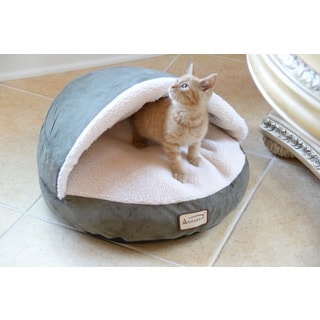 My cat's favorite spot with modification I was initially very disappointed in this product because the hood part has no structure and does not stay up as the picture shows. I bought it specifically for one of my cats who enjoys the "caves" I make for her out of blankets but is not a burrower. I decided to try modifying it using some stiff plastic tubing that was leftover from another project. This tubing is labeled SDR9 PEX 3006 (O.D. is approx 3/8") purchased from a home improvement store in the plumbing/pipe area. I ripped the seams about 1/2" where the beige velour channel of the hood front meets the bed on both sides, then fed a 32" piece of the tube through the channel. Now it stays up perfectly and two of my cats will fight over who gets to sleep in it! The dip in the front is perfect for paws to hang out of. There's a separate velour/canvas pillow that makes the bed extra soft and cozy. A completely unexpected benefit is the velour catching tons of loose cat fur . I didn't bother to sew up the openings, so the tube can be pulled out when the bed needs washing. By accident my second Armarkat purchase was the Slipper-shaped Mocha Pet Bed (also available here on Overstock), but neither cat is interested in it. So, I'm buying another one 18" Burgundy & Beige Pet Bed today to keep both cats happy.