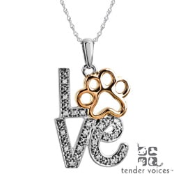 SaleASPCA Tender Voices Silver Diamond Accent 'Love' Paw Necklace