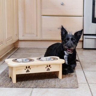 SaleElevated Dog Food Diner with Paw Print in Natural Wooden Finish