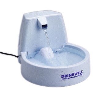 With its patented free-falling stream of water this PetSafe fountain encourages pets to drink more, and they get the cleanest, freshest-tasting water. This system is perfect for large dogs or multi-pet homes.- Two (2) one-gallon reservoirs with handles and fill level indicator for easy refills