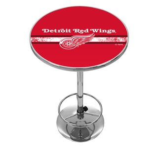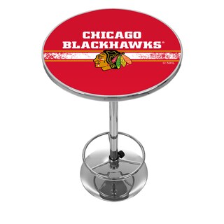 Impress your guests with your officially licensed chrome pub table. This fully functional pub table will be a stylish accent to your game room, garage or collection. The table top features an authentic logo trimmed with chrome finished plastic banding and is supported by a chrome base. The chrome base is both lightweight and durable. It features an adjustable foot rest for customizable comfort. Bring style, function and comfort to your game room, garage or collection with an officially licensed chrome pub table.