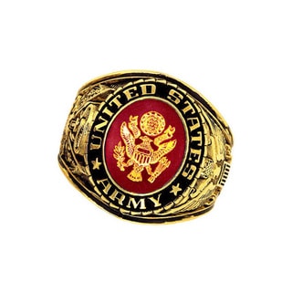 SaleOfficial US Army Goldtone Deluxe Engraved Red Crystal Ring