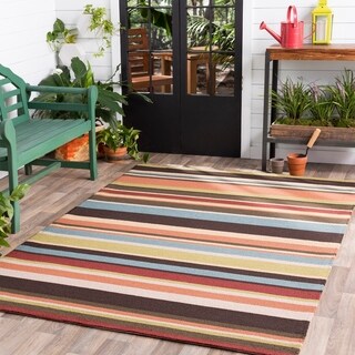 SaleHand-hooked Shailene Striped Casual Indoor/ Outdoor Area Rug (3' x 5')
