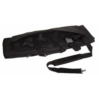 The Elite Covert Operations Cases have a clean, discreet look. They are designed for a user to tie down a weapon, assembled or taken down, and are especially useful when you do not want to advertise weapon transportation. They are constructed of extremely durable 1000 denier nylon and have closed-cell foam padding (removable). There is a large, padded external pocket and has loop Velcro section to attach pouches and accessories. The padded divider separates weapon from Velcro attach area, it is adjustable, removable triple magazine pouch (specify style upon ordering). It has four adjustable tie-down straps.| Caractéristiques | |