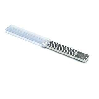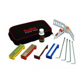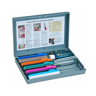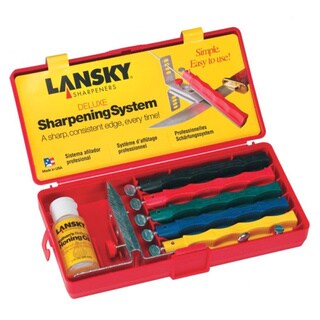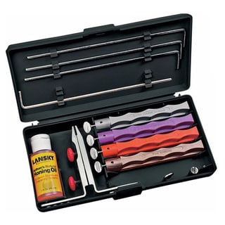 The Lansky Universal Sharpening System is the ultimate in knife sharpening systems technology. Safe, easy and convenient to use, the sharpening system is designed to give your blade a professional, razor sharp edge every time. This will include coarse (120 grit), medium (280 grit) and fine hones (600 grit) along with a medium triangle shape hone for serrated knife sharpening. The kit comes with a precision-engineered, multi-angle, flip-over knife clamp and color-coated sharpening hones with finger-grooved safety holders. Each honing stone has a guide rod and they all come in a custom molded storage/carrying case to hold all system.| Caractéristiques | |