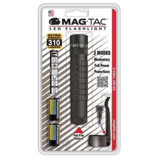 The Maglite Mac-Tac Tactical LED Flashlight is lightweight and compact and boasts a brightness of 310 lumens. The flashlight has a runtime of up to 18 hours on low, 4 hours on high, and runs on two included CR123 batteries.| Caractéristiques | |