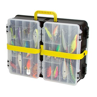 Plano's classic two-tray tackle box features a cantilever tray design that extends open to showcase the contents. A sturdy collapsible handle makes the case easy to carry and store while the brass bailed latch tightly secures the lid, keeping items protected and organized.| Dimensions | See description |