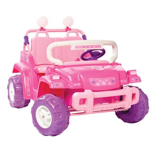 Realistic Jeep Wrangler styling. Seats two (2). Disney Frozen colors and graphics. Pretend radio with songs from the movie. Working doors open & close. Roomy rear storage area.