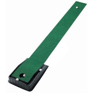 putting green Item did not perform to what originally was thought to be a thicker more true artificial surface. Ball return doesnot always work and you must insert hand into area to get ball. Disappointed in product.